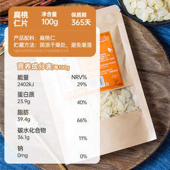 云山半扁桃仁片大杏仁片木仁片100g曲奇饼干牛轧糖面包装饰烘焙原料