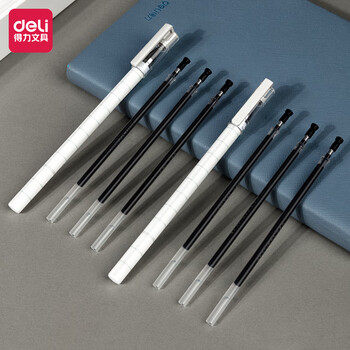 得力(deli)0.5mm黑色中性笔笔芯 子弹头水笔签字笔替芯 3盒共60支6916