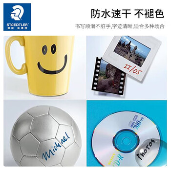 施德楼(STAEDTLER)油性记号笔 0.4mm防水速干勾线马克笔儿童美术光盘刻字办公用品4色套装313WP4