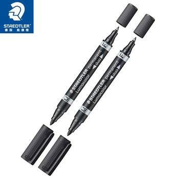 施德楼(STAEDTLER)油性记号笔 粗细双头速干勾线马克笔儿童美术光盘刻字办公用品 黑色2支装348-9