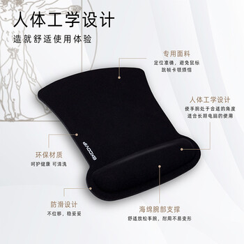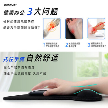 宜适酷(EXCO)黑色记忆棉鼠标垫护腕大号手腕垫腕托笔记本电脑办公加厚游戏垫手枕手托0180