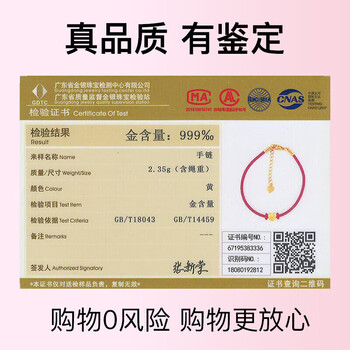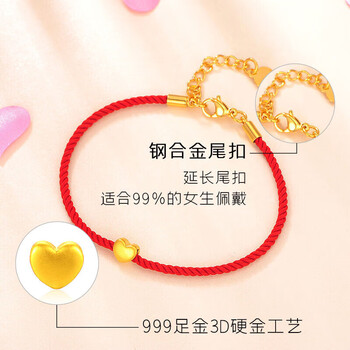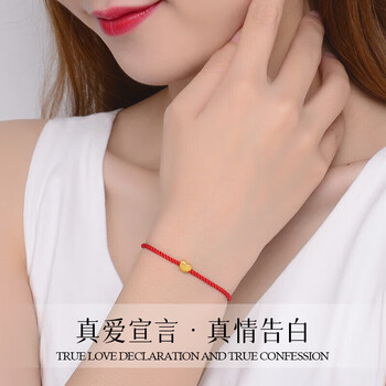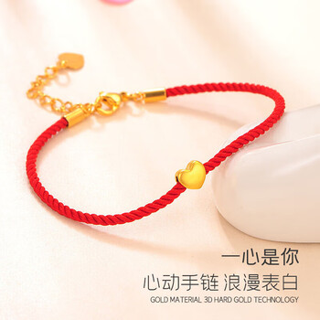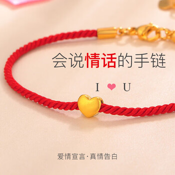 Lossot足金一心是你黄金手链女3D金转运珠表白送女朋友老婆生日礼物