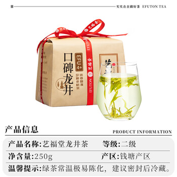 艺福堂绿茶 杭州钱塘老茶树龙井茶浓香250g纸包 新茶自己喝送礼