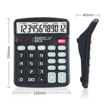 齐心(COMIX)双电源桌面办公计算器 12位大屏幕桌面计算机837 学生办公文具用品 C-330