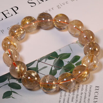 石玥珠宝精品14-15mm天然金发晶手串本命年转运珠手链男女士款 水晶玛瑙