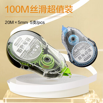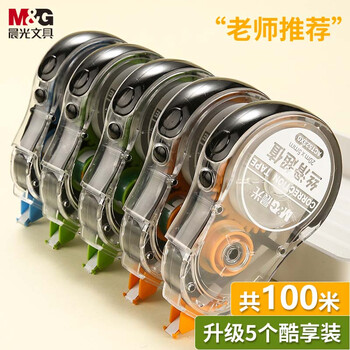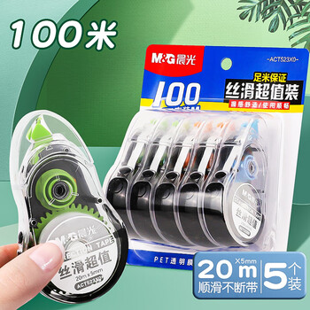 晨光(M&G)文具20m*5mm修正带100米 丝滑超值涂改带 学生改正带 复印无痕 5支装ACT523X0