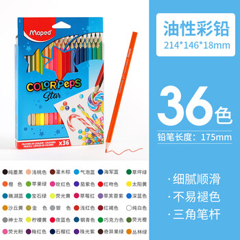 马培德(Maped)油性彩色铅笔 幼儿学生环保绘彩蜡笔 初学美术彩绘涂鸦画笔 节日儿童礼物 832017CH【36色/盒】