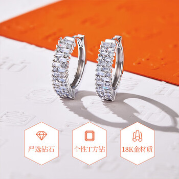 喜钻生日礼物PT950铂金钻石耳环女T方镶显钻精致钻石耳饰