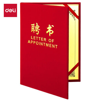 得力(deli)50本8K荣光系列绒布浮雕工艺聘书 红色7598 产品规格:8K 产品颜色:红色 包装方式:opp袋装