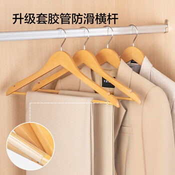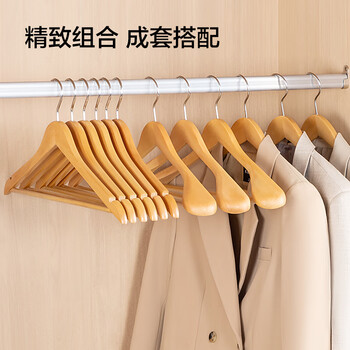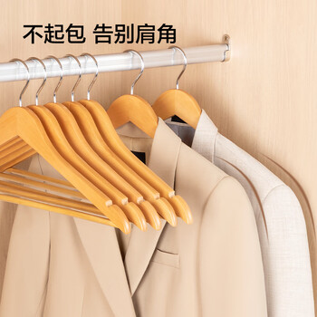 京东京造 实木衣架无痕木质衣架子防滑晾衣架木制衣服撑衣柜挂衣架5个原木