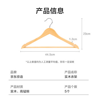 生活日用---衣物洗晒/护理用具---衣架/夹京东京造实木衣架5个装