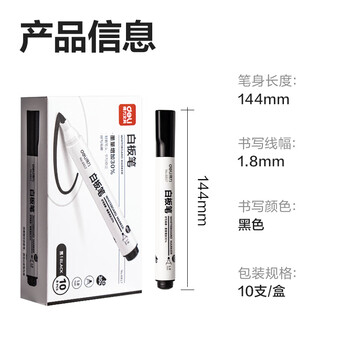 得力(deli)粗头可擦易擦白板笔滑耐磨耐用 办公文具会议老师培训教学 黑色10支/盒 P06817