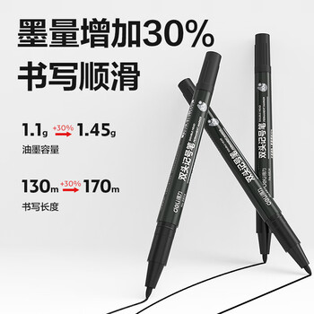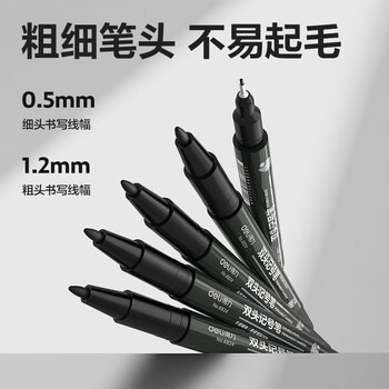 得力(deli)黑色双头0.5mm/1.2mm油性记号笔 办公物流快递会议签字笔马克笔 学生儿童美术勾线笔12支/盒P06824
