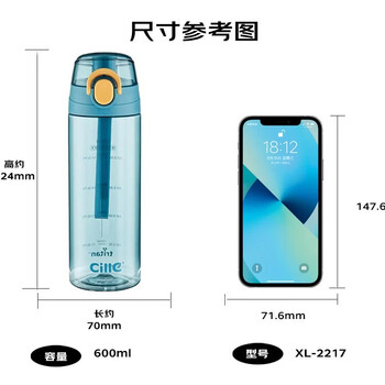希乐(cille)塑料杯子男女学生儿童杯tritan户外运动便携水杯600ml水绿XL-2217