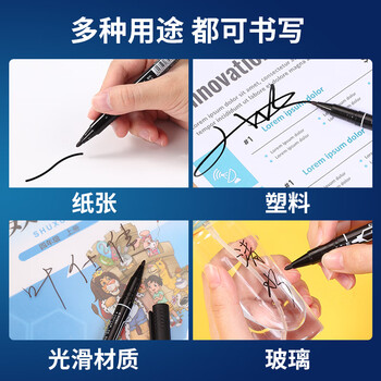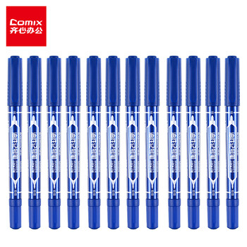 齐心(Comix)速干防水小双头油性物流笔/记号笔 蓝色12支装 MK804