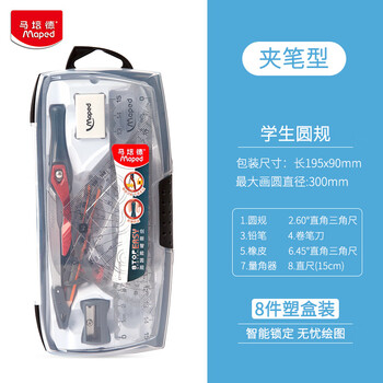 马培德(Maped)【开学必购】智能锁定绘图圆规 初高中考试锁距圆规 小学生制图绘图学习工具 196608CH 夹笔款