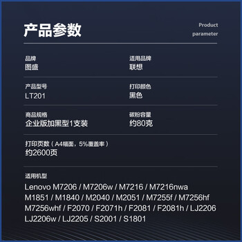 图盛LT201粉盒硒鼓碳粉适用联想M7206 M7216nwa/M7206w/M7256whf打印机M1851/M1840/LJ2205/S1801墨粉Lenovo