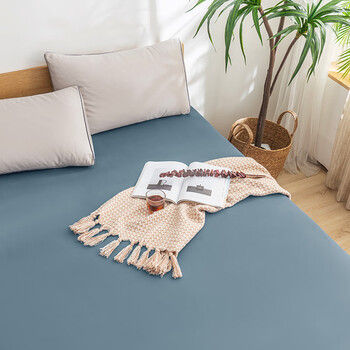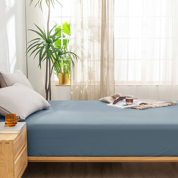 京东京造 60支长绒棉磨毛床笠 A类加厚纯棉床罩床垫保护套 1.2米床 灰蓝