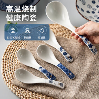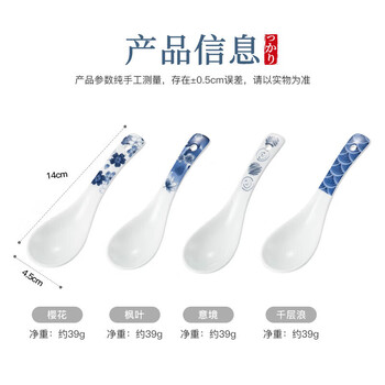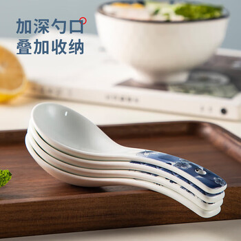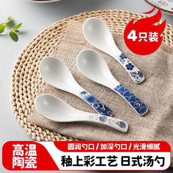 美厨(maxcook)饭勺汤勺 陶瓷勺餐勺汤匙勺子日式小勺调羹5.5英寸4个装 MCCU4520
