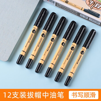 金万年【中油笔】1.0mm蓝色圆珠笔牛滑拔帽 英文书法笔 办公用品 12支装 G-3126-002