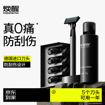 5层德国进口刀片刀头*5 金属质感手柄*1 沥水底座*1 115g柠檬香型剃须泡沫*1