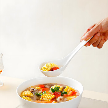 斯凯绨(Sky Top)大号汤勺陶瓷调羹饭勺子餐勺骨瓷纯白家用餐具马戈1件装
