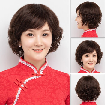 佰丝堂假发女短发真人发丝中老年妈妈款自然全头套全真发50岁发套遮白发