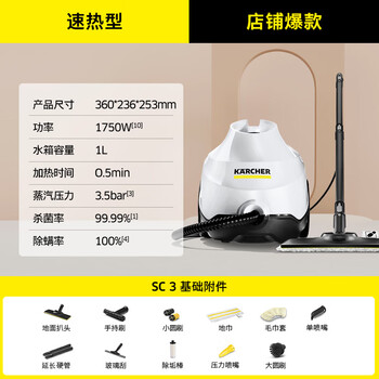 KARCHER德国卡赫 蒸汽拖把家用高压高温清洁机厨房油烟机清洗机去油污30秒速热洗地机杀菌SC3