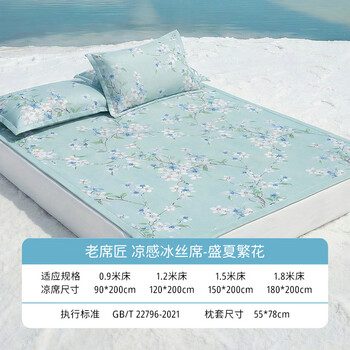 老席匠凉感冰丝席凉席800D 单人两件套90*200 盛夏繁花【可机洗】