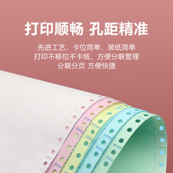 安兴四联三等分撕边彩色电脑打印纸 单据票据结算单针式打印纸(241-4-1/3S 色序:白红蓝黄 1000页/箱)