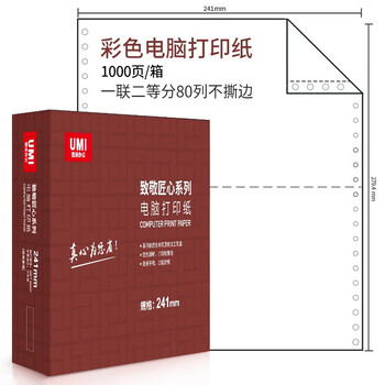安兴一联二等分不撕边电脑打印纸针式打印纸单据票据安心省钱(241-1-1/2S色序:白1000页/箱)