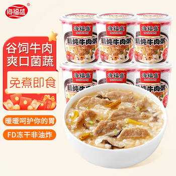 海福盛方便速食粥懒人食品早餐宵夜营养冻干粥八宝粥精炖牛肉粥38g*6杯