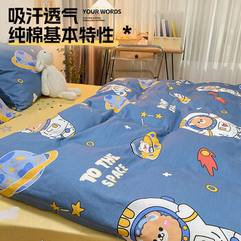 梦诗娜A类纯棉儿童被套单件全棉学生被罩床品150x200cm宇航员