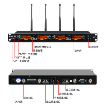 狮乐(SHILE)SH-10 会议室U段无线话筒一拖四会议鹅颈手持头戴耳麦领夹专业培训舞台麦克风 主机+4只鹅颈话筒