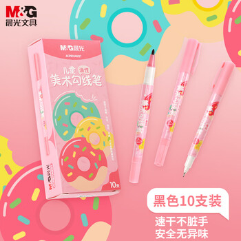 晨光(M&G)文具黑色双头细杆记号笔 儿童美术绘画描边勾线笔 学习重点标记笔 女生款 10支/盒ACP901AM37