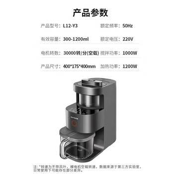 九阳(Joyoung)破壁机 自动不用手洗高端多功能预约热烘除菌1.2升 Y3(天空系列)【企业采购】【支持一件代发】