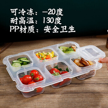 壹居长宁升级食品留样盒幼儿园学校酒店保鲜取样盒6格组合1800ml(配标签)