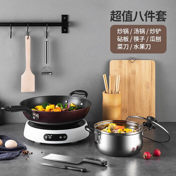 美厨(MAXCOOK)锅具套装炒锅汤锅砧板菜刀筷子木铲削皮刀小刀厨具8件套 MCTZ004