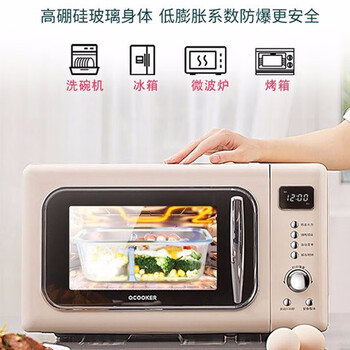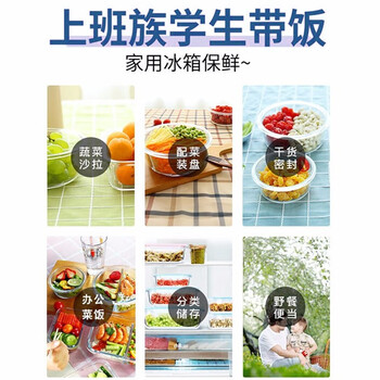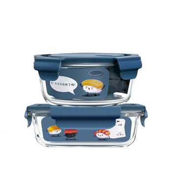 拾画 保鲜盒微波炉饭盒2件套 高硼硅耐热玻璃便当盒长680ml+圆660ml