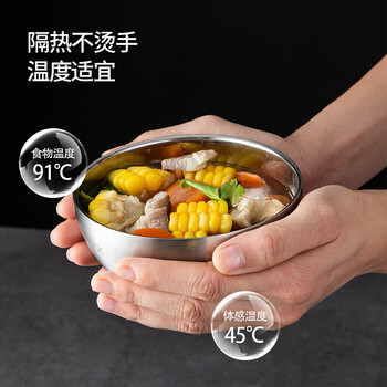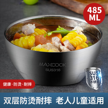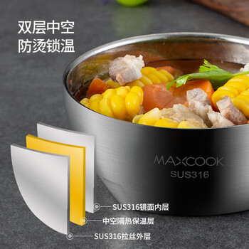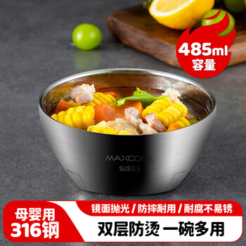 美厨(maxcook)316不锈钢碗 汤碗双层隔热 餐具面碗13.5cm MCFT6128
