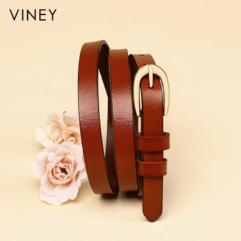 viney牛皮女士皮带简约百搭腰带女高颜值针扣细裤腰带装饰裙带生日礼物