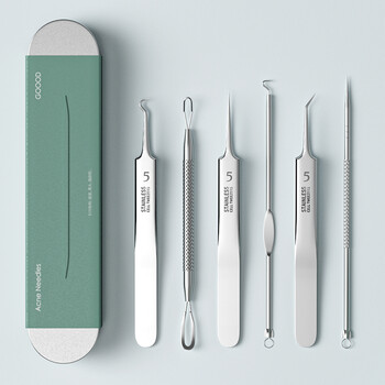 古迪GOOOD超尖粉刺针细胞夹6件套装挤痘痘闭口去黑头刮美容院专用工具镊子