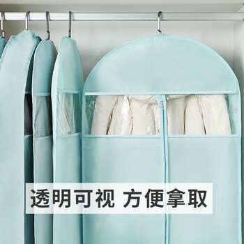 JEKO&JEKO衣服防尘罩防尘袋10件套大衣羽绒服衣物收纳袋透明衣罩挂衣袋蓝色