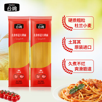 公鸡传统意面低脂直条形意大利面500g*2袋土耳其进口西餐意粉减脂主食