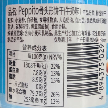 peppito牛奶味骨头形饼干120g儿童营养手指饼下午茶饱腹充饥节日休闲零食