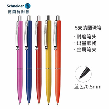 施耐德(Schneider)圆珠笔 按压式大容量0.5mm子弹头可换芯原子笔学生日常办公用K15蓝芯-5支混装