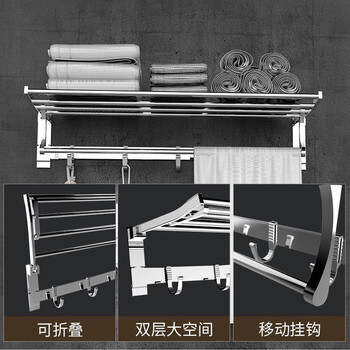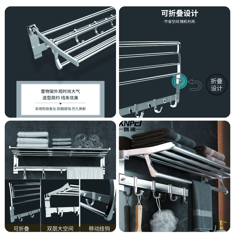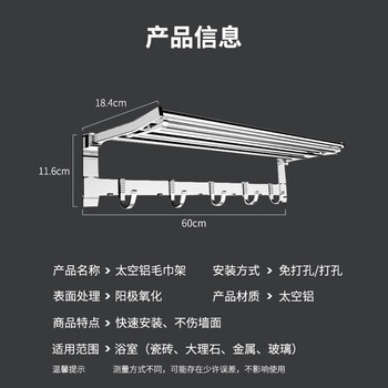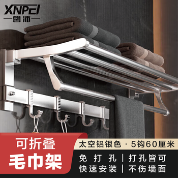馨沛太空铝折叠毛巾架免打孔卫生间浴室衣服置物架洗澡间免钉浴巾架子