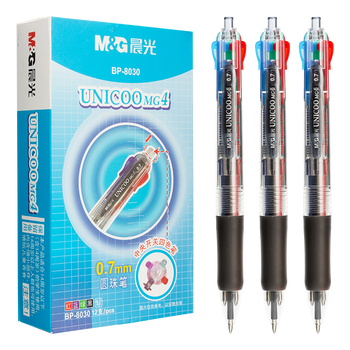 晨光(M&G)文具多功能4色圆珠笔中油笔0.7mm子弹头软胶握手原子笔按动笔 学生 办公用品 12支/盒BP8030