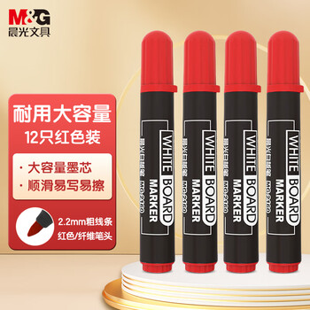 晨光(M&G)文具可擦白板笔 单头办公会议笔 易擦大容量白板笔 红色12支/盒MG2160