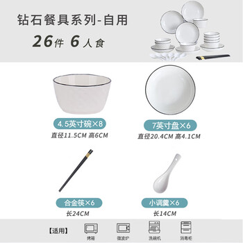 4.5寸碗*8,7寸盘*6,筷子*6,勺子*6